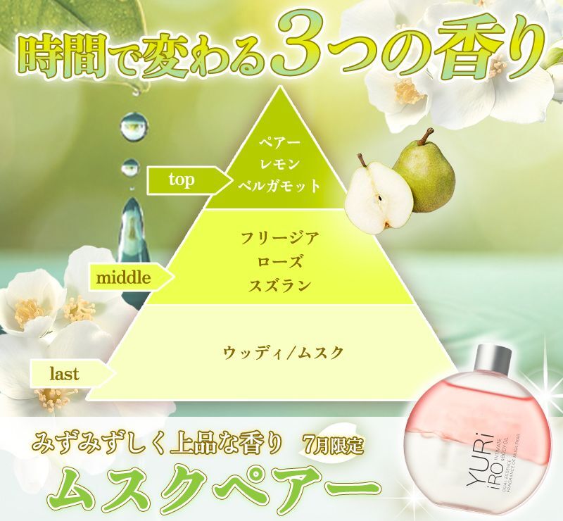 洋梨の爽やかな甘さとムスクの色気が溶け合って、ずっと嗅いでいたくなる…!